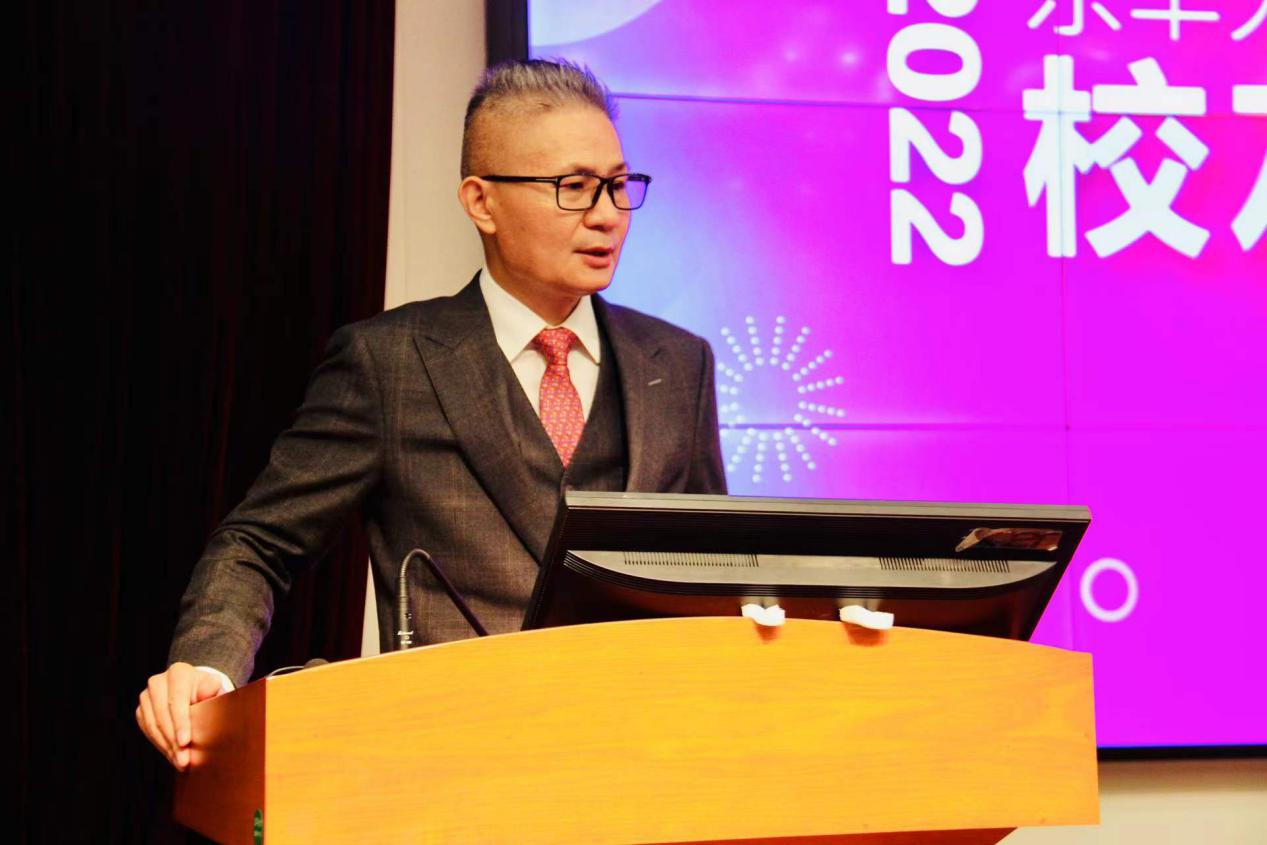 刘长奎代表学院向论坛致开幕词。在致辞中,他介绍了学院的发展历程以及2021年在人才培养、科学研究、社会服务、国际交流等方面取得的辉煌成果,向广大校友及社会各界人士长期以来地关心支持学院发展表示感谢,并邀请广大校友一如既往地支持、参与学院校友工作。