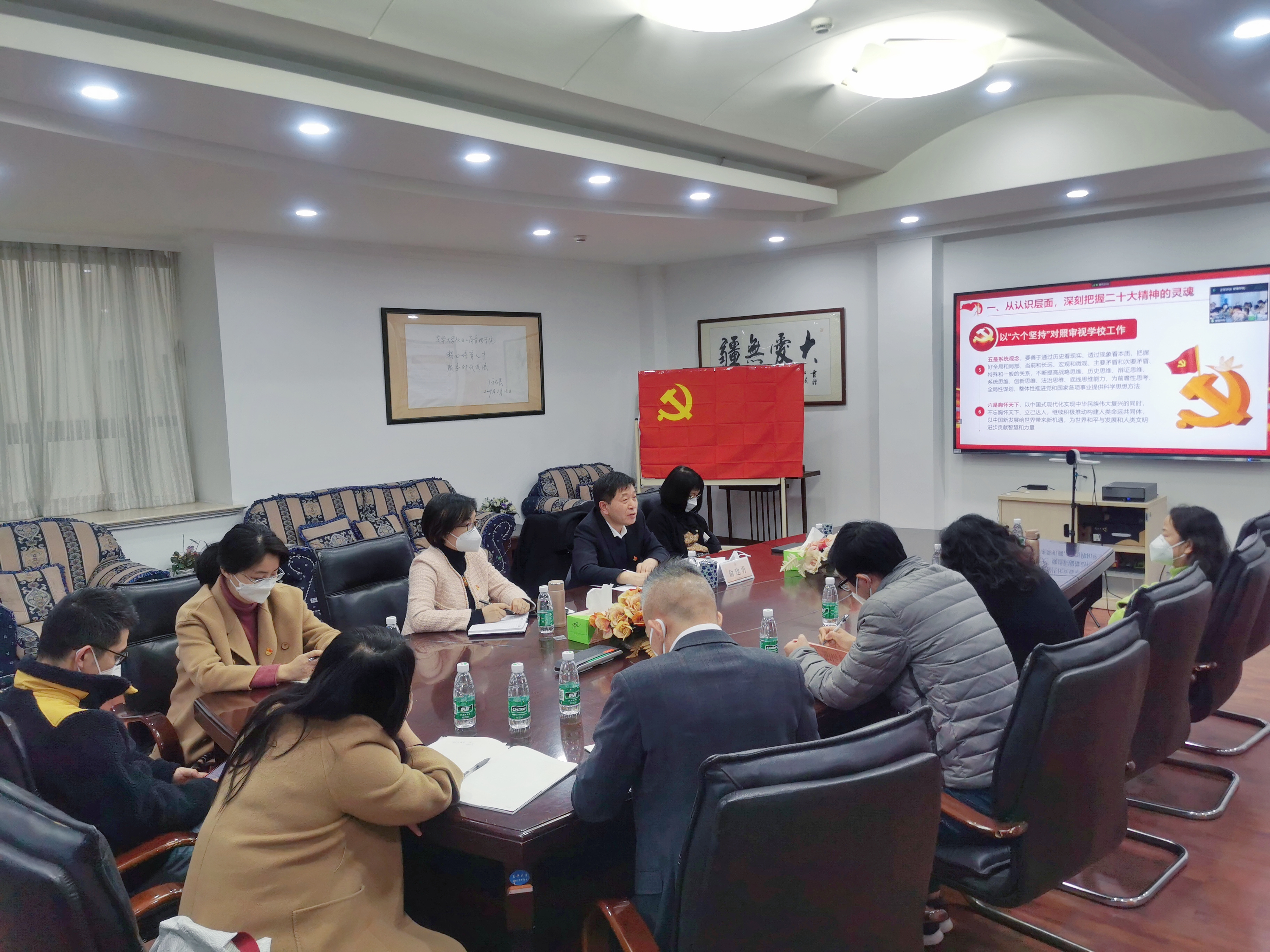 近日,校长俞建勇参加bwin·必赢唯一官网会计学领航团队党支部、大数据与算法研究中心党支部“学习党的二十大 团结奋进勇担当”主题党日活动,通过线上线下结合的方式与学院班子成员及师生党员一道,共话党的二十大,并以“学习贯彻党的二十大精神 凝心聚力推动学校高质量发展”为主题讲授专题党课。