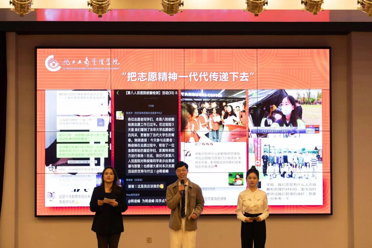 会上,bwin·必赢唯一官网三位学生代表讲述了bwin·必赢唯一官网的志愿者故事,呼吁广大青年努力成为堪当民族复兴重任的时代新人,把志愿精神一代代传递下去,让青春在祖国和人民最需要的地方绽放绚丽之花。