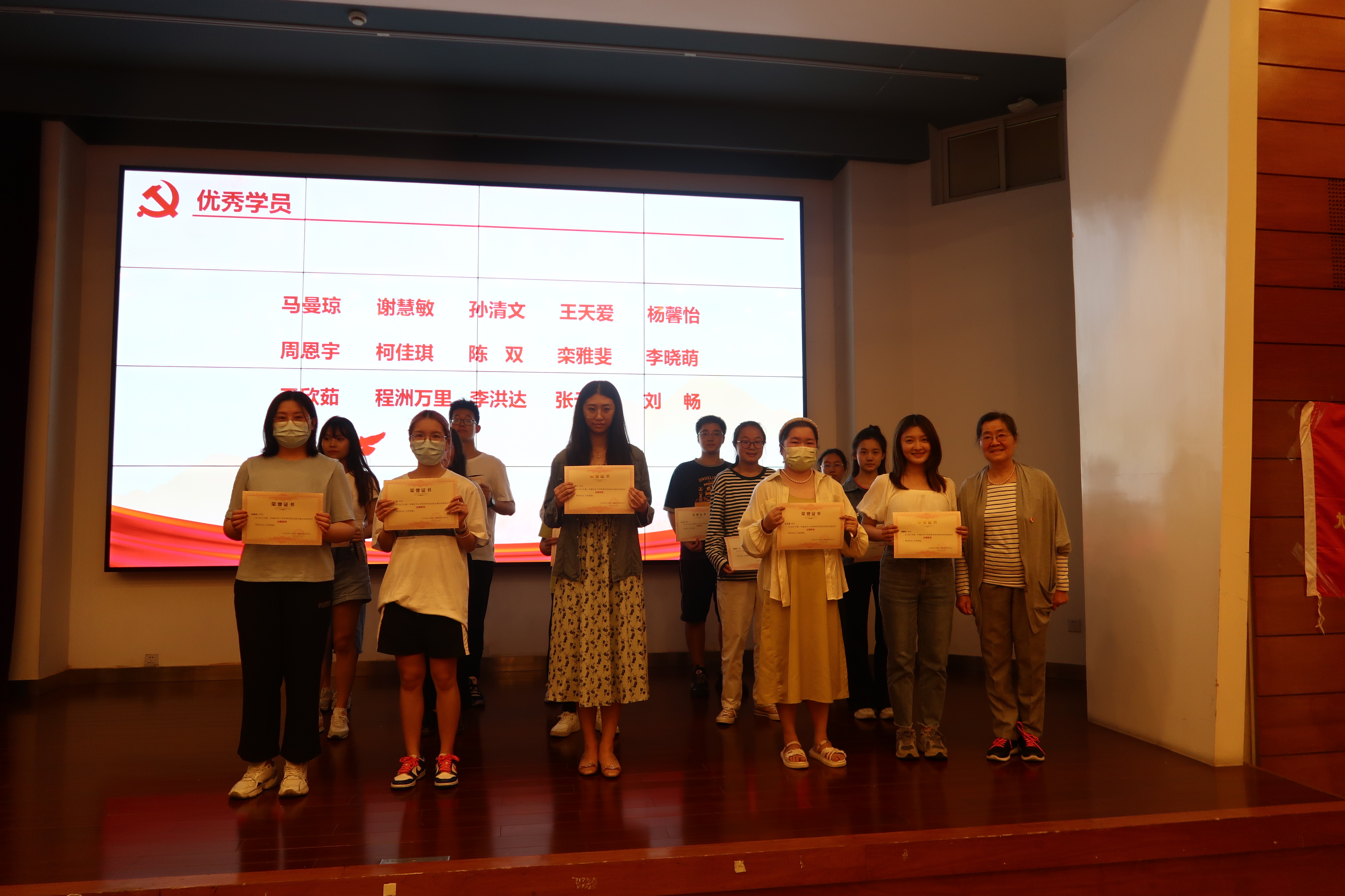 经过一个月的党校学习,学员们深化了对党的认识,根据学员们在党校培训期间的综合表现,本次发展对象培训班共评选出15位优秀学员,丁怡宣读优秀学员名单,曹为农为优秀学员颁发证书并合影留念。