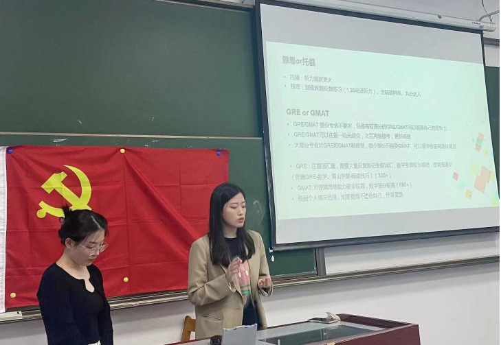 图5 薛羽捷同学(右)和刘宇超同学(左)做留学经验分享