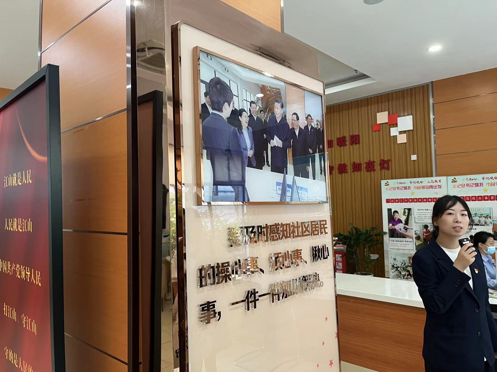 在驿站一楼,讲解员首先介绍了习近平总书记2018年11月6日来到上海市虹口区市民驿站嘉兴路街道第一分站的殷切嘱托,习近平总书记提到:“城市治理的‘最后一公里’就在社区。”随后,讲解员介绍了市民驿站一系列的便民举措,例如综合服务窗口、党建工作站等,充分反映了社区感知居民的操心事、烦心事、揪心事,一件一件加以解决的服务理念。