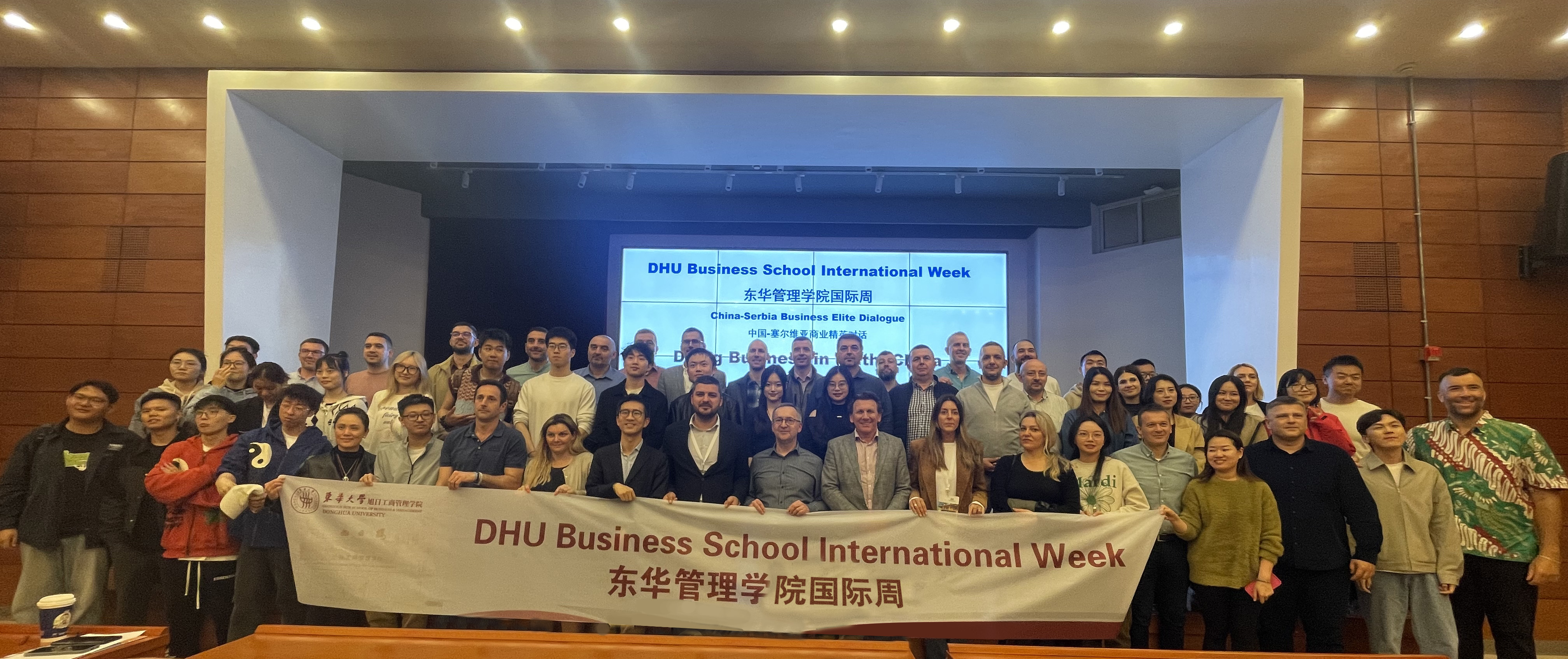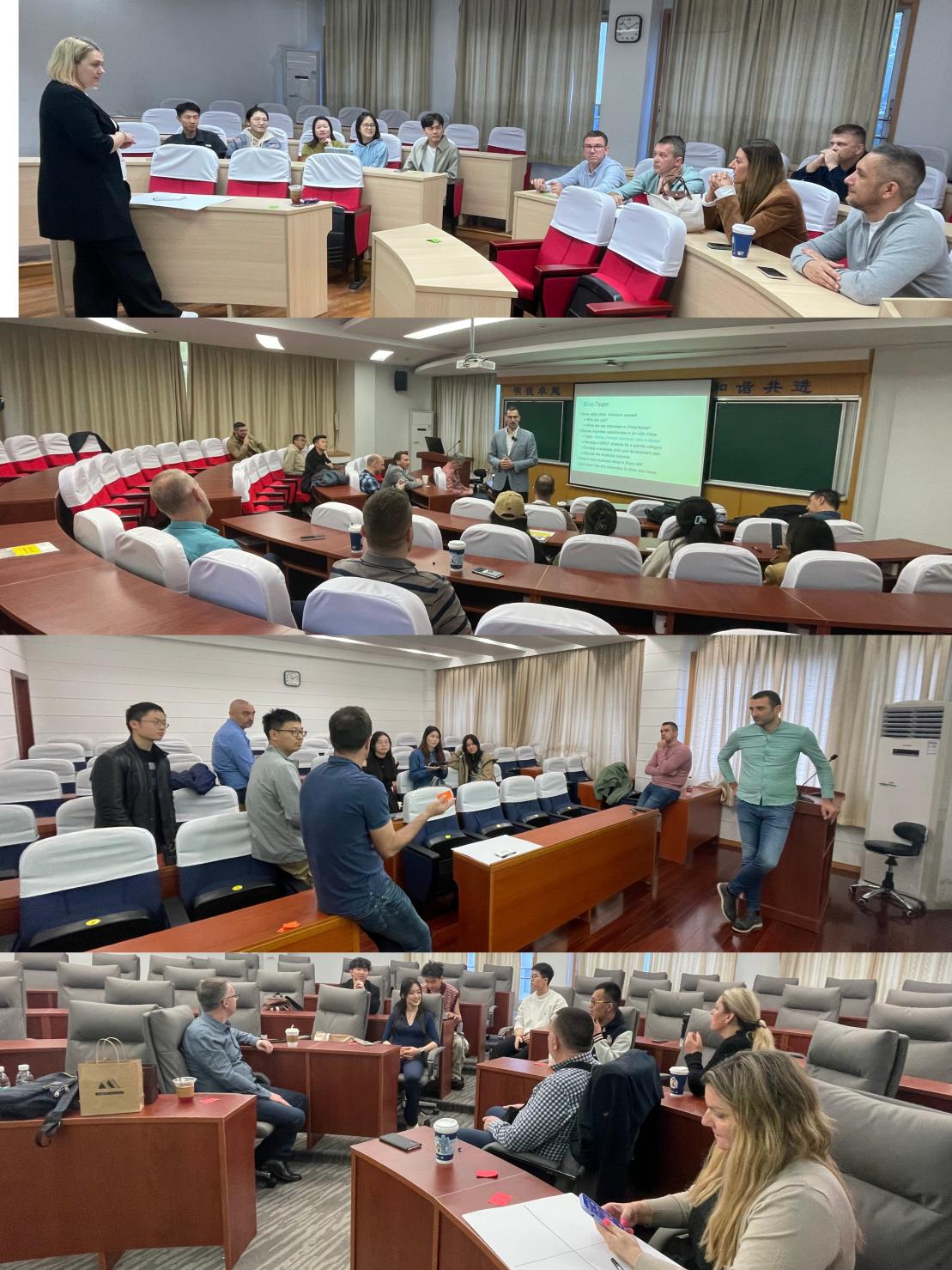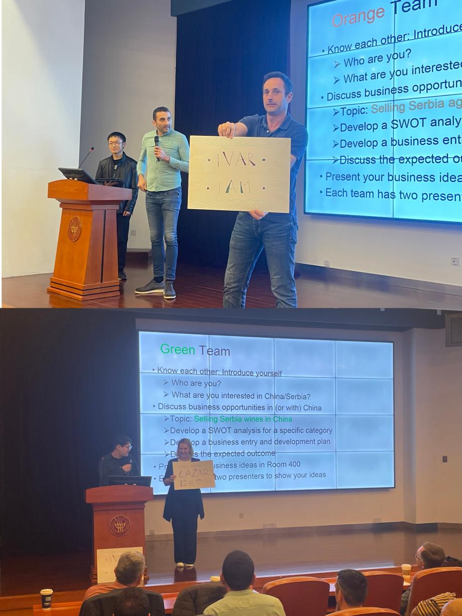 随后,来自塞尔维亚商学院的30多名MBA学生分别和在场的东华MBA学生随机组合成4个小组,共同就中塞时尚品牌、农产品、纯电汽车以及红酒等品牌的商业合作、市场开发等为主题展开了热烈的小组讨论。中塞双方学员从各自熟悉的领域出发,探讨新的商业合作的机遇与挑战,问题及对策,并分享了各自的观点和经验。