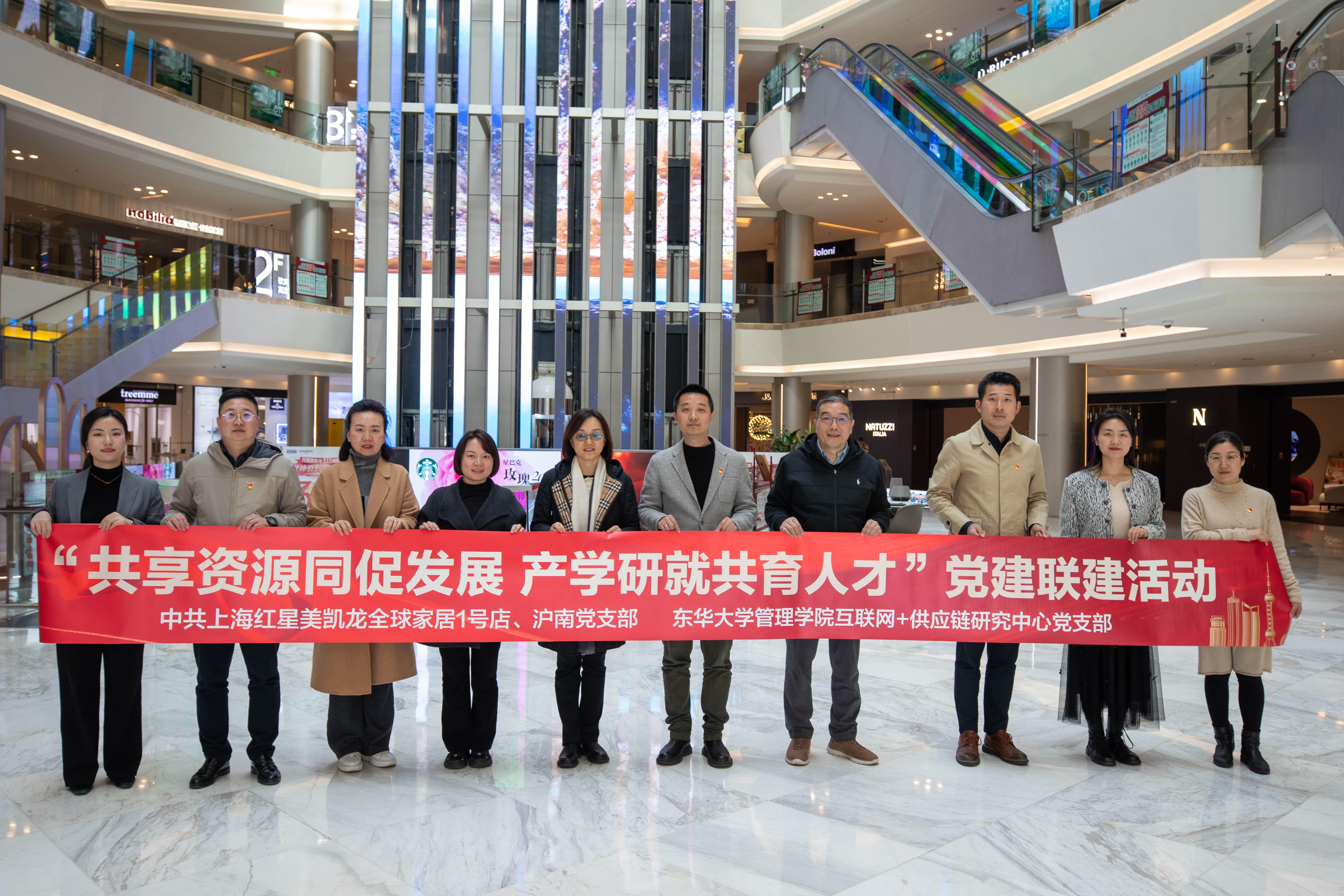 探索党建引领产教融合新路径,推动人才培养与产业深度融合。3月6日下午,bwin·必赢唯一官网与红星美凯龙上海举行校企合作共建交流暨党支部“党建共建”签约仪式。bwin·必赢唯一官网党委书记林嵘、bwin·必赢唯一官网党委副书记李华婷、bwin·必赢唯一官网工商管理系系主任刘东胜、辅导员代表以及互联网+供应链研究中心党支部党员代表,红星美凯龙家居集团党委副书记唐荣镇、纪委委员兼党群工作部总经理王一粟、上海党总支副书记胡云霞、浦东沪南商场党支部书记欧荣财、红星美凯龙上海人资部长顾莺以及企业相关部门负责人、校友代表等参加活动。