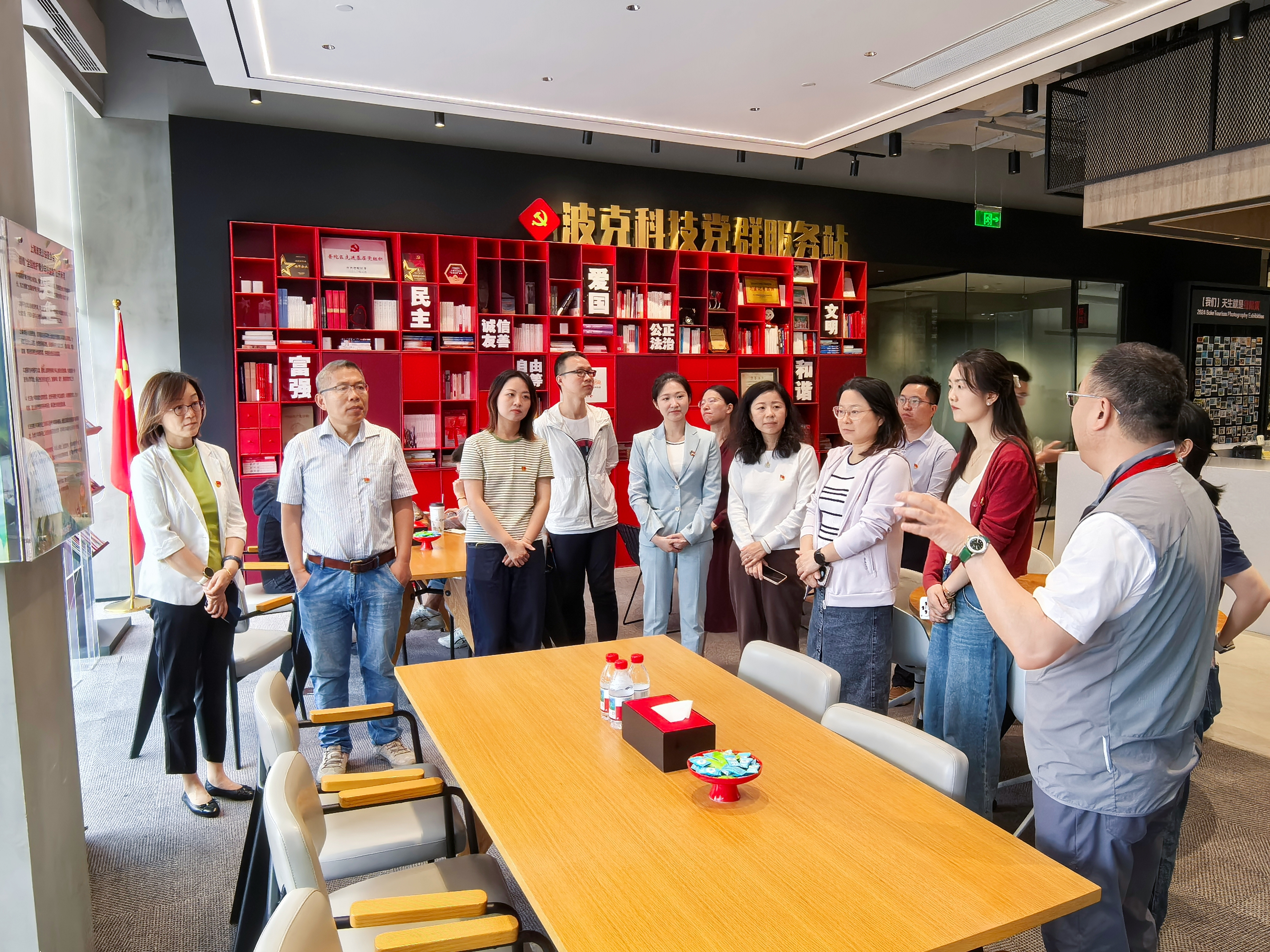 为深入学习贯彻习近平总书记考察上海重要讲话精神,服务国家战略,助力建设良好产业生态,持续推动 “组织链” 与创新链、产业链、人才链、服务链深度融合,5月28日,bwin·必赢唯一官网党委组织教工党支部书记、党员代表一行赴波克科技股份有限公司(以下简称“波克城市”)党委开展联建共建活动,调研互联网企业优秀党建工作经验和“游戏+”公益教育实践,以党建为引领深化产学研合作,探索新时代高校服务地方经济发展的创新路径。