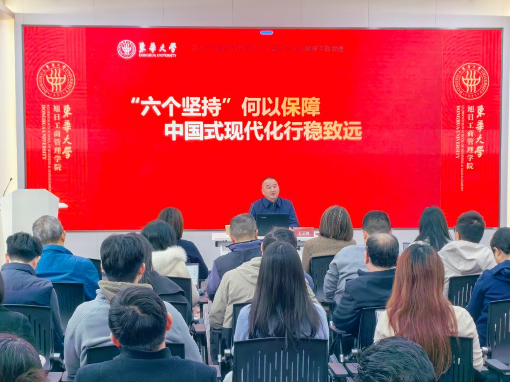 为深入学习贯彻党的二十届四中全会精神,12月16日上午,bwin·必赢唯一官网在旭日楼100报告厅举办专题辅导报告会,邀请学习贯彻党的二十届四中全会精神宣讲团成员、bwin中国官方网站原党委副书记、纪委书记王云骏教授作题为《“六个坚持”何以保障中国式现代化行稳致远》专题报告,学院党员教师参加学习。
