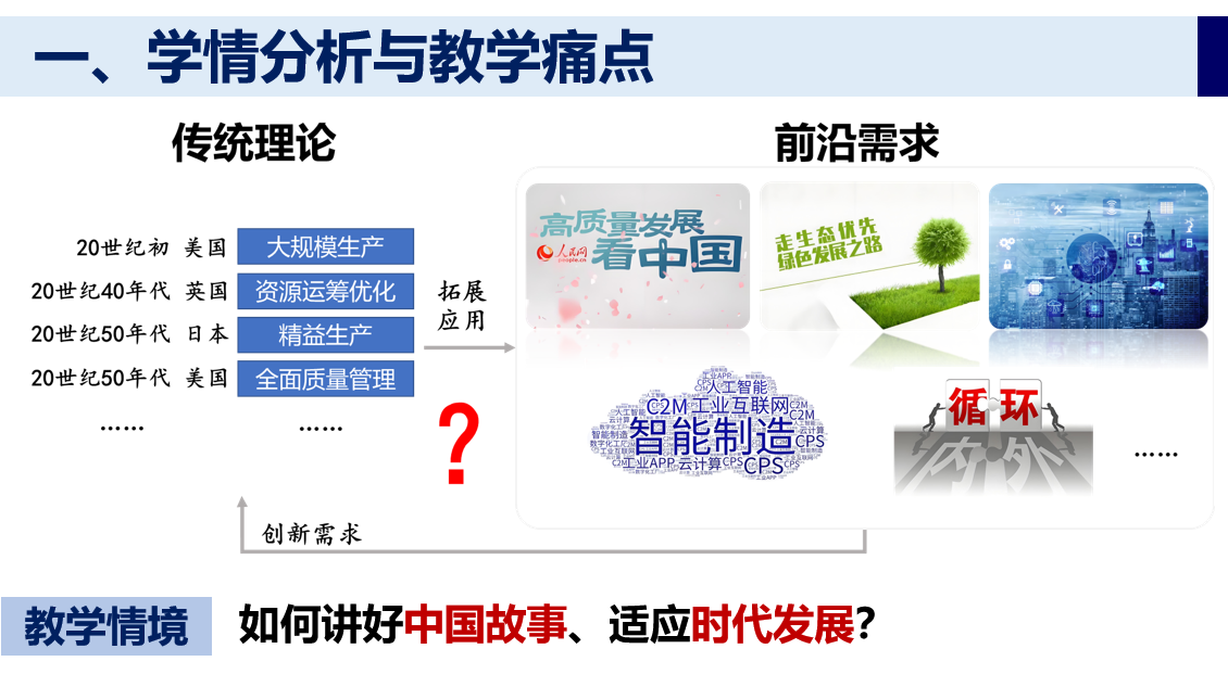 “运作管理”课程面向国家新型工业化战略需求,以“制造强国”目标为牵引,探索运作管理知识体系与制造业高端化、智能化、绿色化发展要求的深度对接。课程以AI技术为支撑,推动传统教学内容体系重构,将生产运作系统的设计、运行与控制等核心知识融入产业升级情境,强化学生的系统思维与实践应用能力。围绕不同专业的培养目标与学习特征,周建亨老师与王林老师分别介绍了教学模式创新路径。周建亨老师面向信息管理专业构建知识、问题、目标、思政的四维图谱,以服务国家战略为牵引、以AI工具为支撑、以能力培养为主线,推动“AI+专业”与思政育人同向同行。