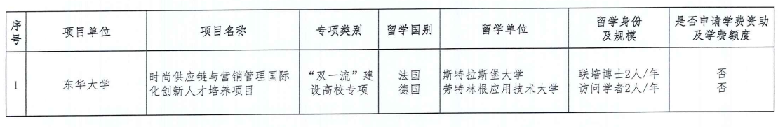 据国家留学基金管理委员会《关于确定2020年创新型人才国际合作培养项目第一批资助项目的通知》要求,我院于今年6月获批国家留学基金委创新型人才国际合作培养项目1项——《时尚供应链与营销管理国际化人才培养项目》,执行期3年,项目获批共4人/每年,其中,访问学者2名,访问期限3个月;博士生2名,联培时间1年,现开展人员选拨工作。